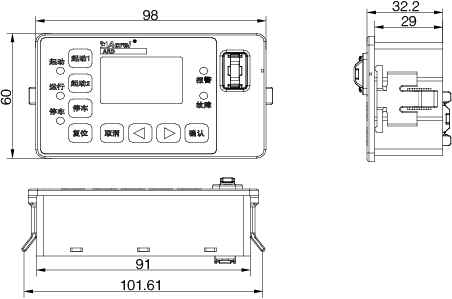主體IP20,分體顯示模塊IP45(安裝在柜體上) |
