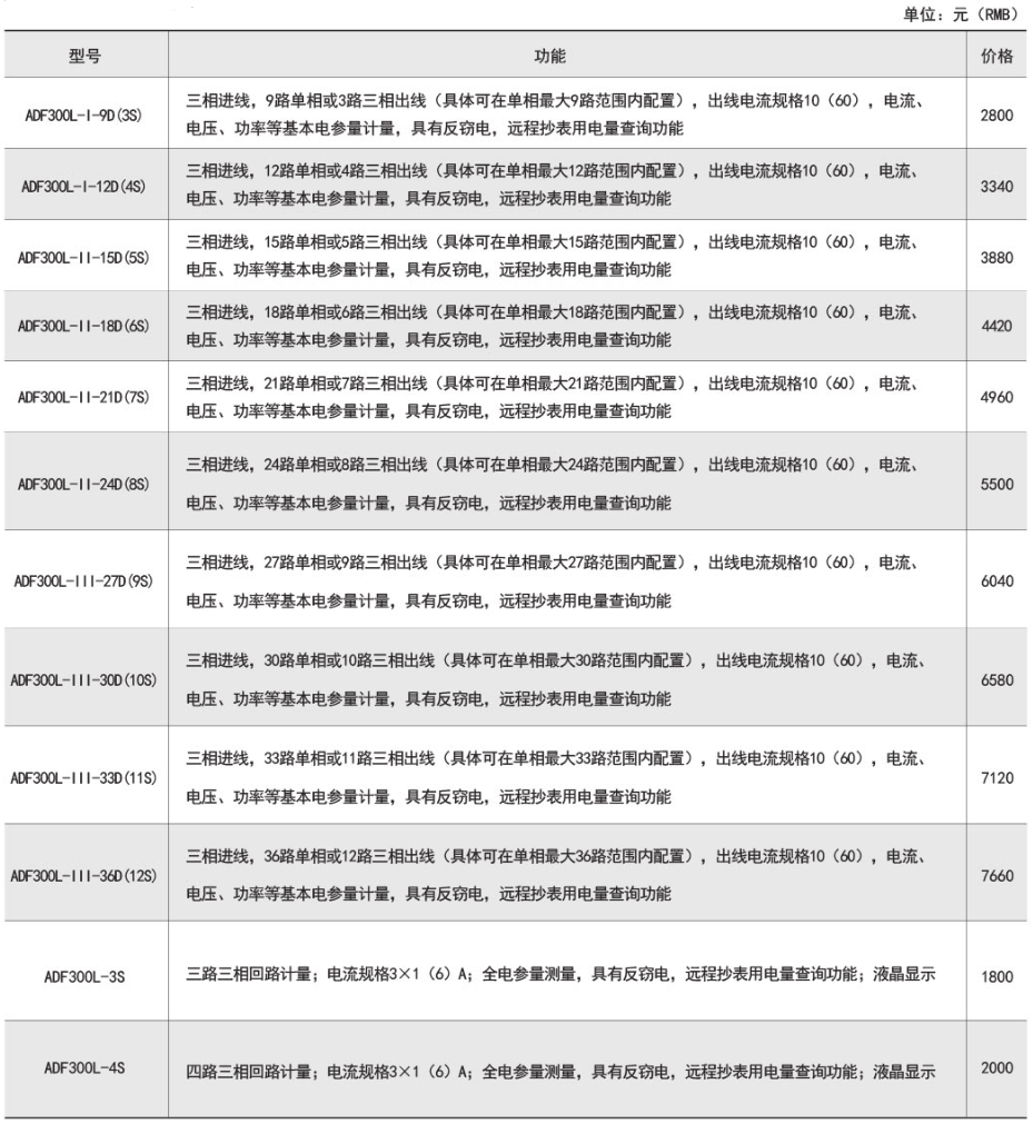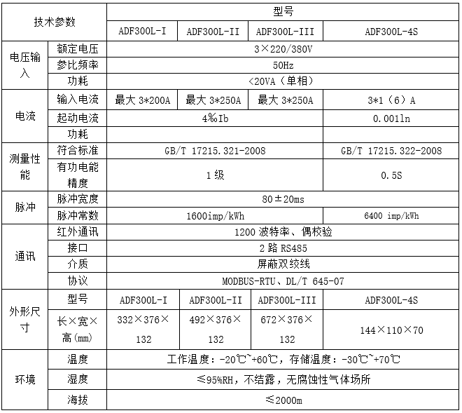 ADF300L 系列多用戶計量箱最大可以計量 12 路三相或者 36 路單相,又可以支持多路單三混合安裝。該系列計量箱因準確度高、集中安裝、集中管理、互不干擾等優勢深受小區、學校、企業等的青睞。計量箱符合國標 GB/T 17215.321-2008。