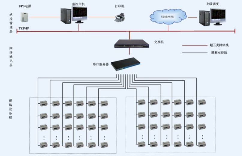 安科瑞Acrel-5000建筑能耗分析管理系統(tǒng)以工作站主機(jī)、通訊設(shè)備、測控單元為基本工具,為大型公共建筑的實(shí)時(shí)數(shù)據(jù)采集及遠(yuǎn)程管理提供了基礎(chǔ)平臺,它可以和檢測、控制設(shè)備構(gòu)成任意復(fù)雜的監(jiān)控系統(tǒng)。該系統(tǒng)主要采用分層分布式計(jì)算機(jī)網(wǎng)絡(luò)結(jié)構(gòu),如系統(tǒng)結(jié)構(gòu)圖所示:臨商銀行羅莊支行項(xiàng)目能耗系統(tǒng)站控管理層及網(wǎng)絡(luò)通訊層?,F(xiàn)場共有152只安科瑞PZ系列電能表。