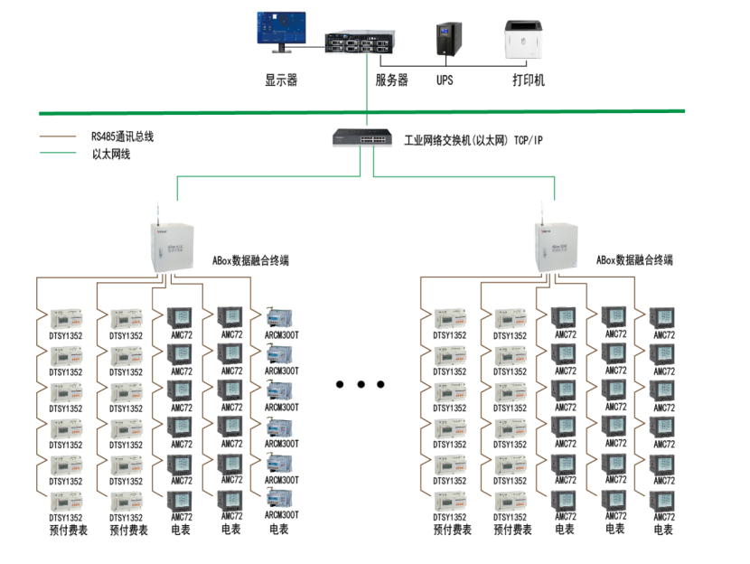 該項目工1個變電所和10個樓層配電間。安科瑞提供的電能管理系統(tǒng)解決方案包括:8只ARCM300T-Z,50只DTSY1352-F,150只AMC-72,1個遙控單元ARTU-16,6個攝像頭,溫控儀2臺,1臺溫濕度記錄儀。遙控單元ARTU-16里包括:煙感,門磁,水浸。