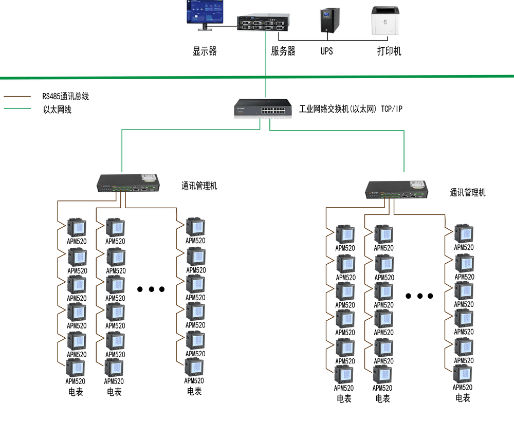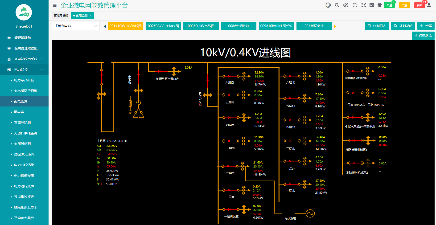 項目包括:動力中心全場中心變配所(ET1),包裝物流中心變配所(ET2),包裝車間變配電室1(ET3),包裝車間變配電室2(ET4),成品物流中心變配電室(ET5),變配電室(ET6),地下室變配電室(ET7),采集這7個配電房的微機(jī)保護(hù)、儀表、溫控儀、UPS、直流屏。