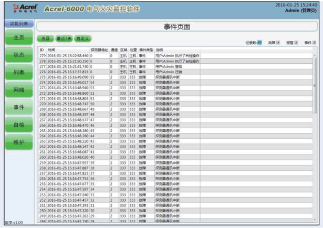 功能: Acrel-6000電氣火災監控系統是用于接收剩余電流式電氣火災監控探測器等現場設備信號,以實現對被保護電氣線路的報警、監視、控制、管理的運行于計算機的工業級硬件/軟件系統。本系統適用于智能樓宇、高層公寓、賓館、飯店、商廈、工礦企業、國家重點消防單位以及石油化工、文教衛生、金融、電信等領域,對分散在建筑內的探測器進行遙測、遙調、遙控、遙信,方便實現監控與管理。 應用場所: (1)辦公建筑(商務辦公等); (2)商業建筑(商場、金融機構建筑等); (3)旅游建筑(賓館飯店、娛樂場所等); (4)科教文衛建筑(文化、教育、科研、醫療衛生、體育建筑等); (5)通信建筑(郵電、通信、廣播、電視、數據中心等); (6)交通運輸建筑(機場、車站、碼頭建筑等)。